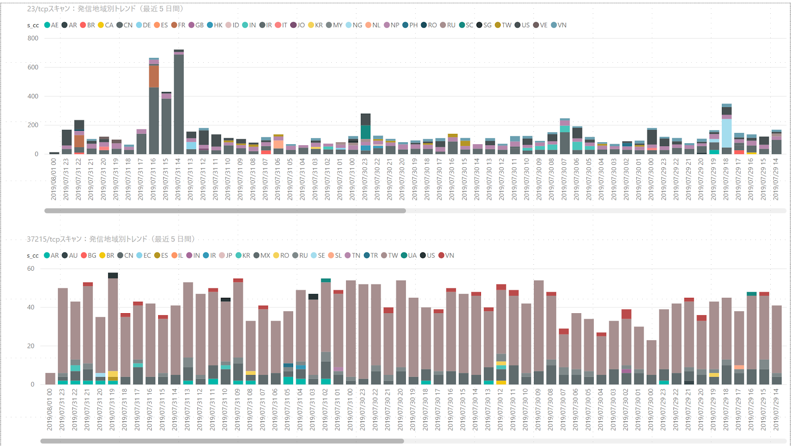 午後2時台から4時台にかけて、23/tcpの活動が米国で活発化しました。4時台にはフランスでも活発化が見られます。